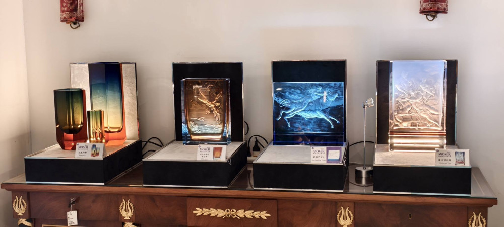 以浪漫雕刻風格聞名業界的賽林格大師,此次也帶來全新創作《歐羅芭公主》。作品以希臘羅馬神話為背景,透過流暢的線條與柔美的造型,演繹愛與命運交織的詩意篇章,將水晶藝術的美學與感性表達推向極致,讓觀者在欣賞工藝之餘,更能感受到作品傳遞的情感溫度。