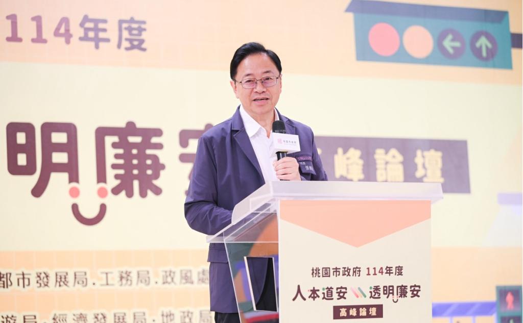 【大成報記者袁慧心/桃園報導】桃園市長張善政今(14)日上午於市府綜合會議廳,出席「114年『人本道安.透明廉安』高峰論壇」。張市長表示,近年市府積極推動通行環境改善,持續投入大量資源與心力,辦理校園周邊通學步道及各類道路設施優化工作。政策落實過程中,工程倫理與廉政治理缺一不可,感謝廉政署及政風單位在決策過程中,於法制層面提供重要協助,讓市府得以落實公開、公平與透明,實現經得起檢驗的施政標準。