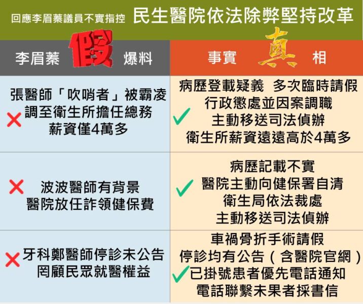 高市衛生局、民生醫院澄清議員質詢不實內容