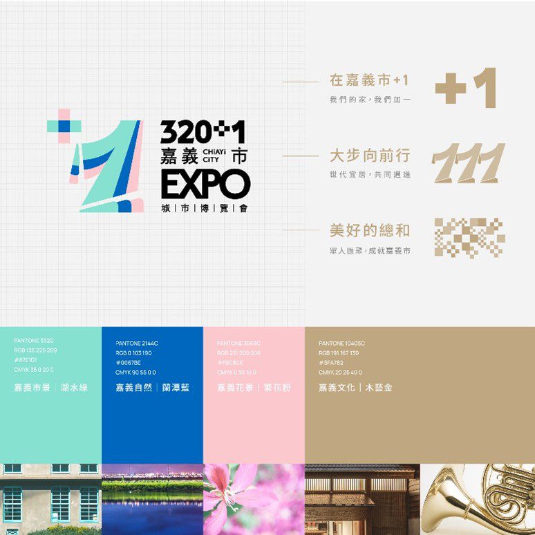 市長黃敏惠表示,嘉義市即將迎來建城321年的重要時刻,「320+1」的命名別具意義。「『+1』代表的是每一位市民、每一次參與、每一個讓城市更好的行動」市長強調,「當每個人都願意為嘉義多做一點、再加一分,城市就會持續前進、不斷美好。」「+1」不只是數字 是嘉義人的生活態度。主識別設計以「+」作為連結語言,展現嘉義市作為開放城市的包容姿態;「1」則化為三色行進的步伐,象徵邁向未來的動能,同時預告城市博覽會將規劃三大主題展區,呈現「咱 嘉義式」的生活節奏與跨世代共融的宜居願景。