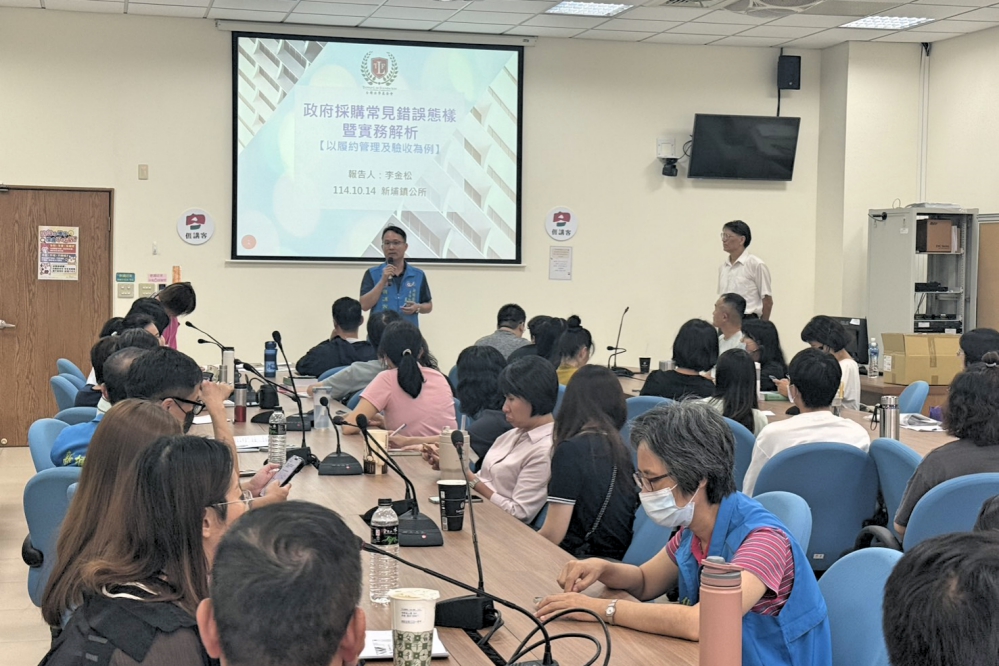 為強化同仁對政府採購履約管理及驗收作業的法遵意識,新埔鎮公所政風室於114年10月14日辦理「政府採購常見錯誤態樣暨實務解析(以履約管理及驗收為例)」教育訓練,邀請台灣法學基金會政府採購法研究中心高級研究員李金松老師擔任講座。李老師現任大學營建工程系講師,曾任政府採購稽核委員及諮詢委員,並著有《政府採購法》及《工程契約理論與實務》等專業書籍,實務經驗相當豐富。
