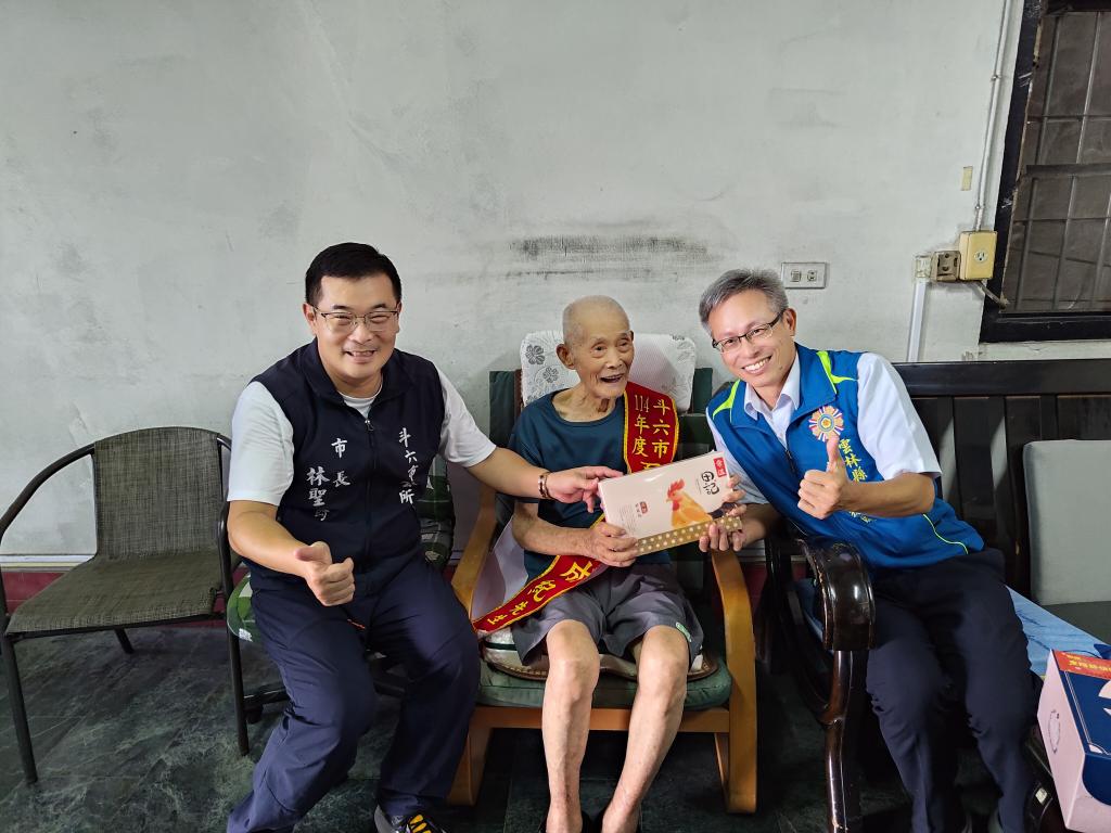 【大成報/雲林報導】為弘揚重陽節尊老、敬老傳統美德,並表達對榮民長輩關懷敬意,雲林縣榮服處於重陽節前夕持續積極慰訪縣內年長榮民眷,日前蘇文玄處長陪同雲林縣張麗善縣長、斗六市林聖爵市長等,一同到斗六市百歲榮民家中慰問,致贈重陽敬老禮金和養生禮品等賀禮,溫馨表達對縣內榮民長輩最誠摯關懷與致敬,活動氣氛溫馨熱絡。