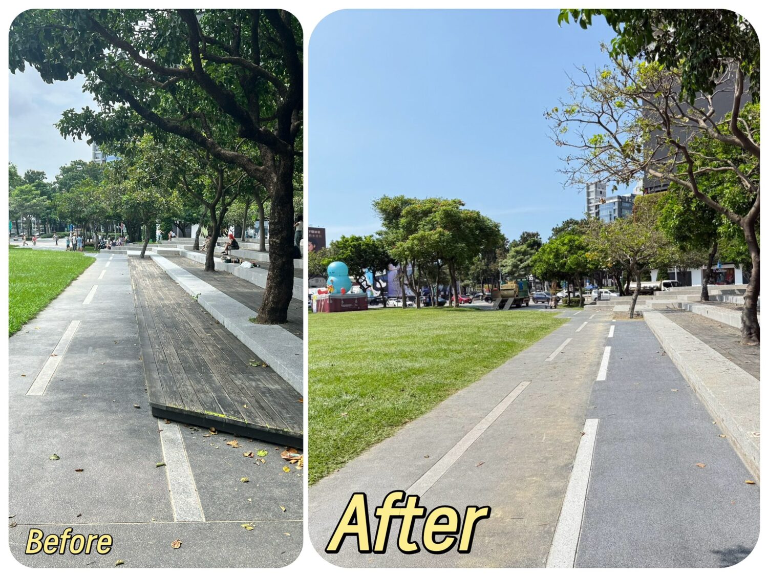 許多市民對優化成果感受深刻,甚至主動致電建設局表達感謝,直言改善後的步道更寬敞順暢,嬰兒車與輪椅通行都更便利,夜間燈光明亮、安全性提升,真正體現市府在細節中的貼心與用心,讓市民休閒體驗大幅升級。