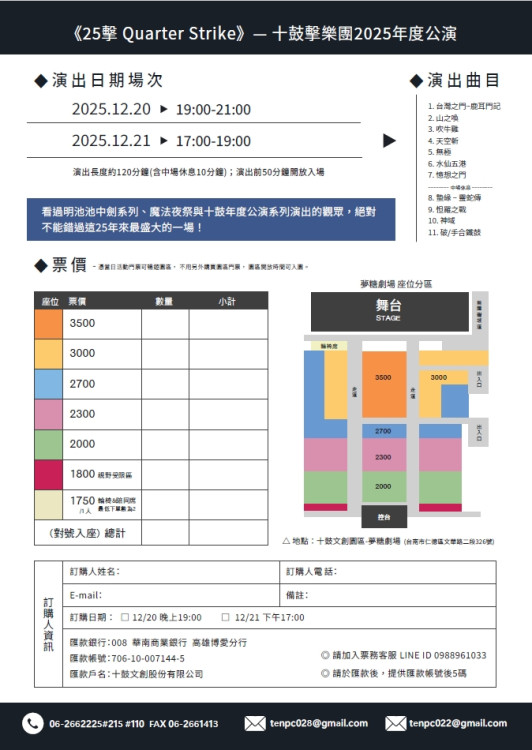 (1)演出主題:《25擊 Quarter Strike》十鼓擊樂團2025年度公演。