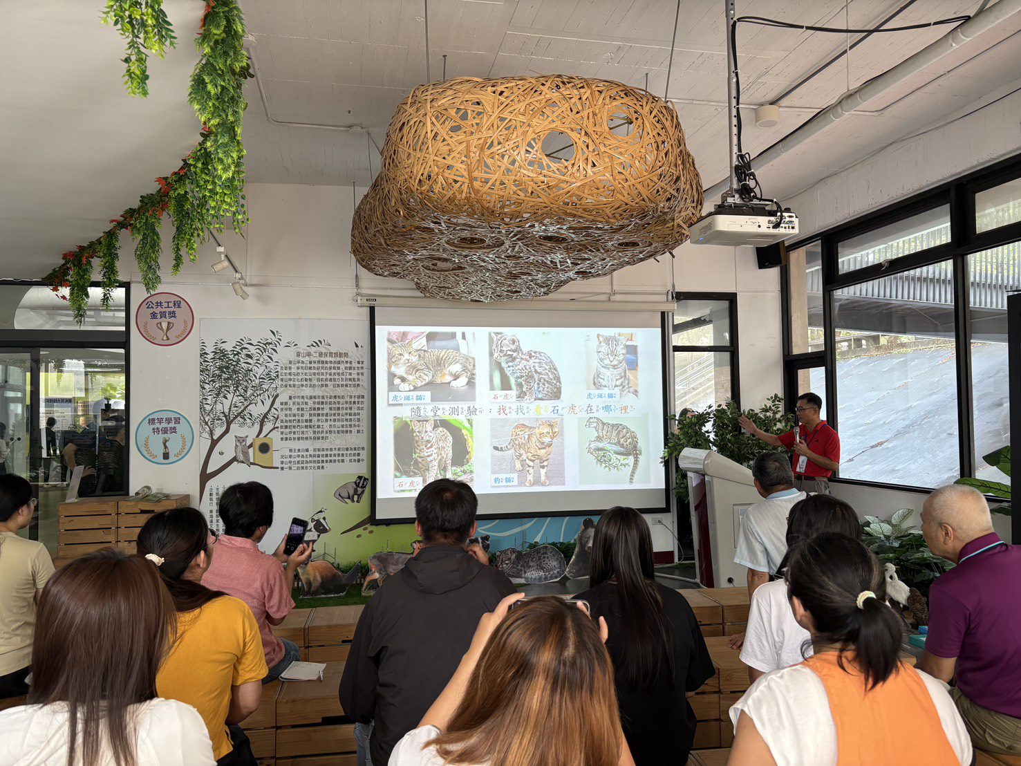 今日上午課程以「認識石虎與哺乳類救傷體驗」及「筏子溪動物豆知識」為主題,透過輕鬆互動的教學,讓學員了解台灣原生保育動物石虎的生態習性與救傷流程,並體驗模擬麻醉針吹箭射擊操作,提升對野生動物救援的實際認識。同時介紹筏子溪畔常見的魚類、水生昆蟲、鳥類、兩棲爬蟲與哺乳類等物種,讓學員理解生物多樣性的重要價值,培養尊重生命與友善環境的態度。