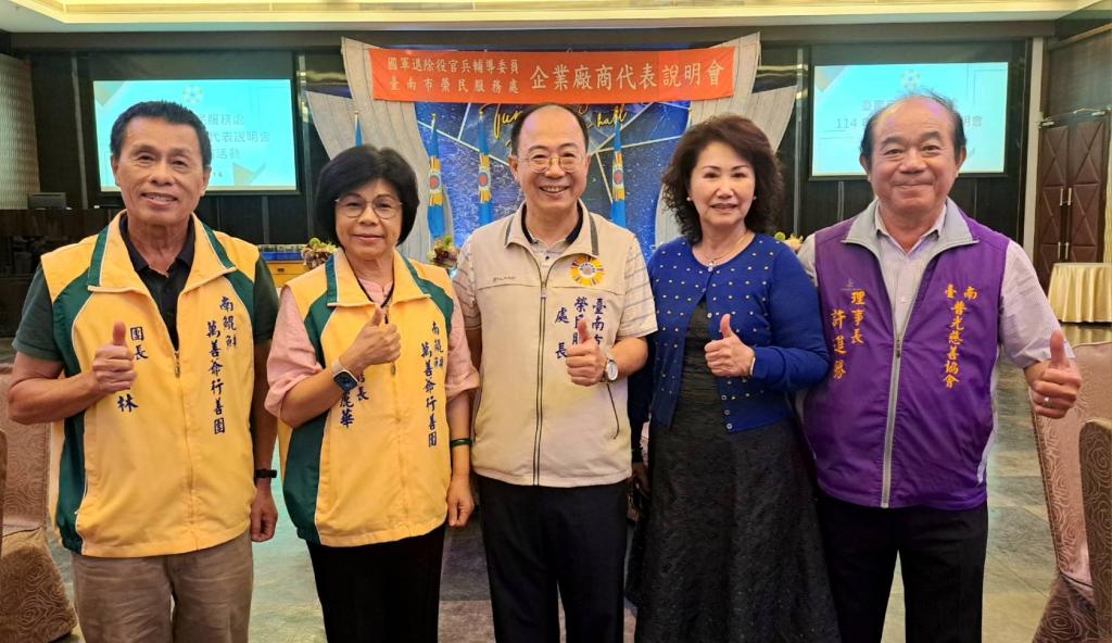 【勁報記者于郁金/臺南報導】為拓展退除役官兵多元就業管道,促進在地企業廠商互動及合作,開發優質職缺,協助榮民(眷)順利就業,臺南市榮民服務處在於近日舉辦 114年度「企業廠商代表說明會」,由該處王國能處長親臨主持,現場邀請在地退軍社團理事長或代表、地區就業服務中心與多家企業及學校代表齊聚東東宴會餐廳,彼此相互交流,現場氣氛熱絡;會中並頒發進用退除役官兵績優廠商感謝狀,攜手推動退除役官兵就業服務,場面溫馨熱絡。