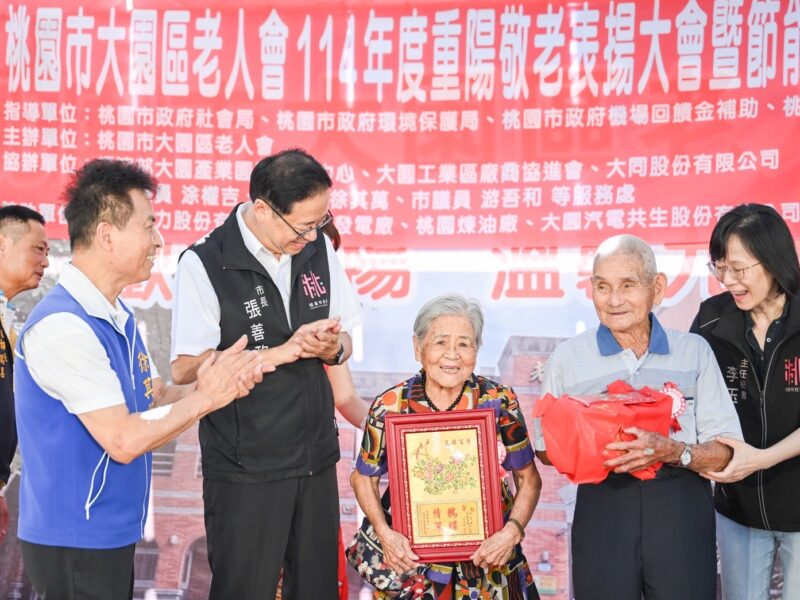 大園區重陽敬老表揚活動 「白金婚」老夫妻攜手走過漫長歲月