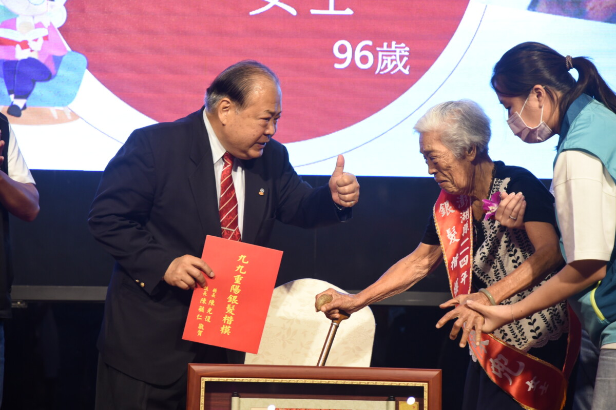 澎湖縣政府辦理重陽節敬老-「銀髮楷模表揚活動」,縣長陳光復親自出席並頒發獎牌感謝23位銀髮楷模對社會的付。(記者翻攝))