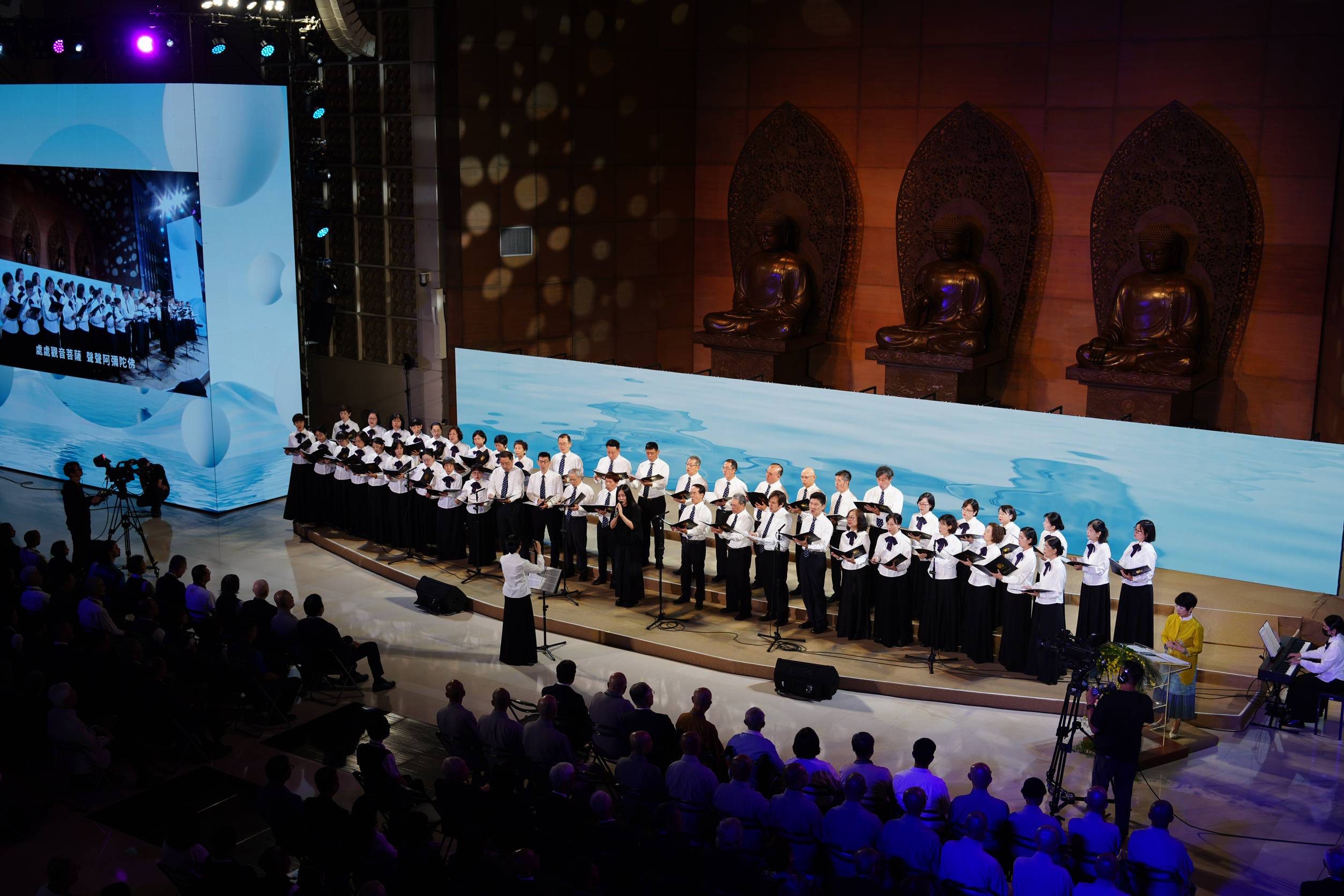 以法鼓團隊的鼓聲、齊豫讚頌觀音的佛曲,迎接臺灣各地與美國、加拿大、馬來西亞、新加坡、泰國、澳洲、香港等海外7個國家地區的信眾代表,回到法鼓山觀音道場;青年院的心潮悅音樂團也以新創歌曲〈同行〉,展現佛法在各個世代的延續和啟發。