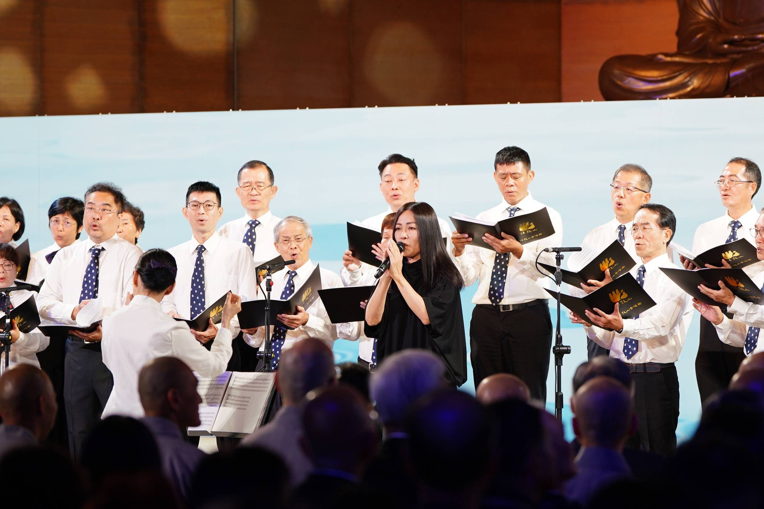 法鼓山合唱團與馬來西亞歌手黃慧音也攜手合作,先後演唱〈法鼓山〉、〈我為你祝福〉、〈四眾佛子共勉語〉。這3首歌都是 聖嚴法師鼓勵合唱團員分享的曲目,合唱團也藉此感恩 聖嚴法師與護持道場的信眾。(照片/法鼓山提供)
