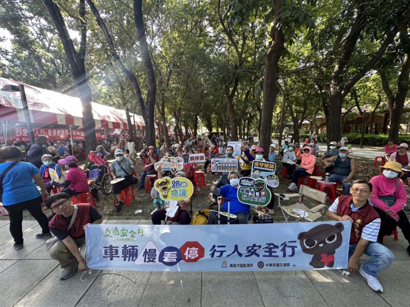 配合楠梓區公所辦理重陽節敬老聯歡活動,高雄市區監理所於楠梓都會公園擺設宣導攤位,針對「車輛慢看停 、行人安全行」及「屆滿75歲高齡換駕照」等主題進行宣導。