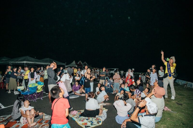 「星空市集」也聚集十個天文教育單位與大專院校天文社團,共同設置互動攤位。望遠鏡實測、星空桌遊、天文攝影展示、火星闖關等活動排隊人潮不斷,許多家庭帶著孩子一站一站探索宇宙奧秘。同時,結合「風域半島」在地特色的社區攤位也人氣滿檔,滿州、港口與枋山等社區推出以星空為主題的輕食與手作商品,從夜光吊飾、星座餅乾到海風調飲,每一攤都成為拍照打卡熱點。參與民眾表示:「這不只是觀星,而是一場有故事、有味道的屏東夜生活。」