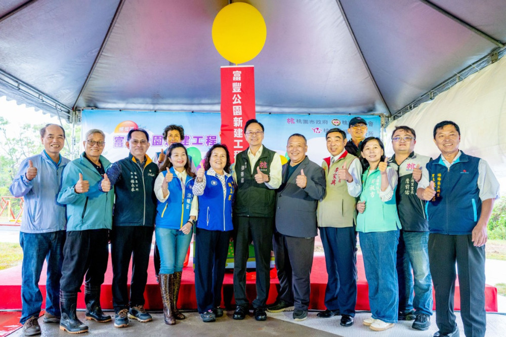 【大成報記者袁慧心/桃園報導】桃園市長張善政今(21)日上午前往楊梅區,出席「楊梅區富豐公園新建工程啟用典禮」。張市長表示,市府持續推動綠地活化與城市再造,將低度利用或閒置土地轉化為市民共享的公共空間,讓城市持續煥新。富豐公園的完工啟用,不僅改善當地生活環境,也為楊梅地區增添一處兼具運動、休憩與親子共融的場域,展現桃園推動宜居城市的具體成果。