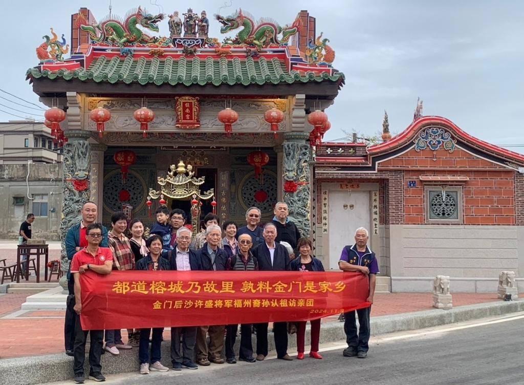 【勁報記者于郁金/金門報導】中秋佳節連假結束,金門后沙許姓宗親代表許榮宏、許木進、許子能等3人,於近日循小三通前往泉州;由居住在泉州許盛(許百萬)將軍的裔孫許志雄陪同,共同首次前往福州拜訪同為許盛(許百萬)將軍裔孫許勋和、許勋楷兄弟及其家屬進行交流,梢去家鄉族人對他們關懷思念及邀請彼等,於年底返鄉參與浯島鎮南宮奠安慶典活動,圓滿完成交流與邀請任務。