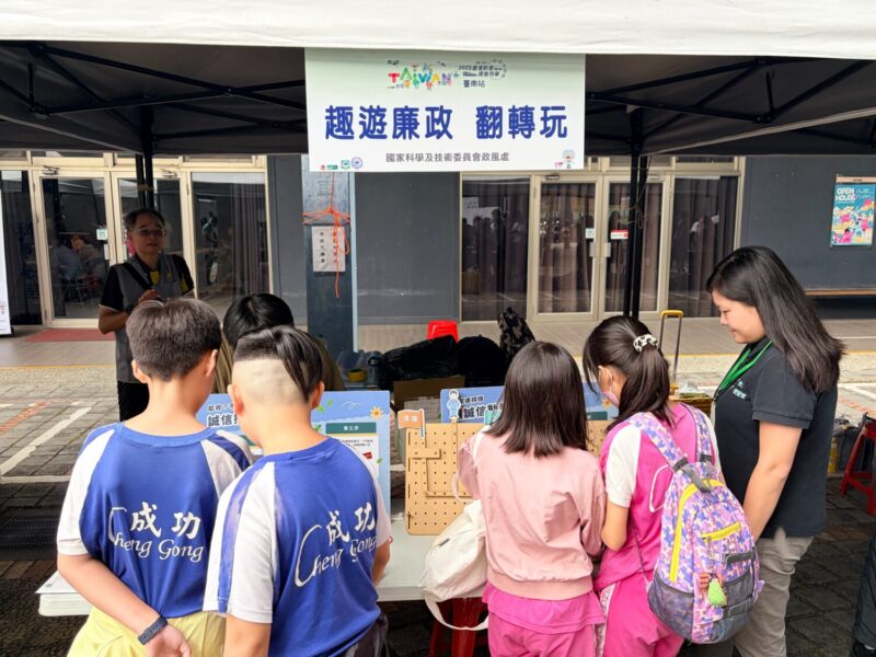 【今傳媒/記者張淑慧 報導】國家科學及技術委員會主辦的「2025年台灣科普環島列車」於10月22日上午駛抵臺南站,南科管理局政風室於臺南火車站特設「趣遊廉政 翻轉玩」主題攤位。該活動以寓教於樂的互動形式,結合社會參與理念,向民眾推廣科學倫理、廉潔教育、校園誠信、水土保持、環境保育、永續發展、資訊安全、反賄選及反詐騙等多元ESG議題,深化公民對永續發展的認識與實踐。