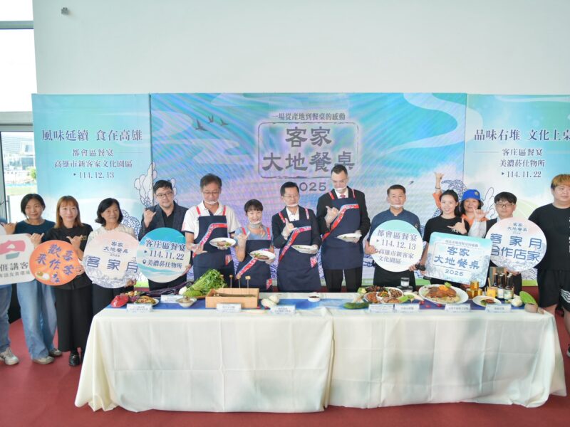 高雄市政府秘書長郭添貴表示,「客家大地餐桌」自開辦以來,已成為推廣高雄客家飲食文化與產業的年度重要品牌活動。郭添貴指出,今年客家大地餐桌特別規劃兩場以風土為題的饗宴,11月22日於美濃菸仕物所舉行的「客庄區餐宴」,由在地餐廳業者集體合作呈現客家風土與產地精神;12月13日於高雄市新客家文化園區登場的「都會區餐宴」,則由法國藍帶主廚李子竟領銜,融合在地農產與季節食材,演繹客家飲食的深厚底蘊與創新精神。透過與餐飲業者、客庄小農與主廚的跨界合作,客家大地餐桌不僅帶動地方產業,也讓更多人看見高雄客庄的農產魅力與文化價值。