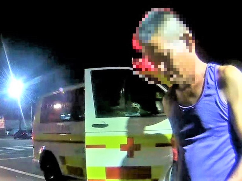 當警方上前輕拍男子肩膀時,毫無反應,警方見狀持續呼叫,突然間男子睜開眼睛站起來,警方聞到一股濃濃的酒味從男子身上傳來,警方推測男子應該是酒醉路倒,於是詢問男子有無受傷及相關年籍資料,男子隨即報出身分證字號,並表示沒有受傷,不要去醫院。