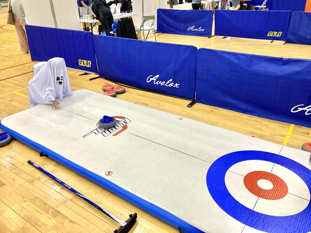 ▲竹北國民運動中心「第六屆親子公益運動嘉年華」盛大登場,小朋友變裝參加好玩的冰壺運動,體驗運動樂趣與多元特色。