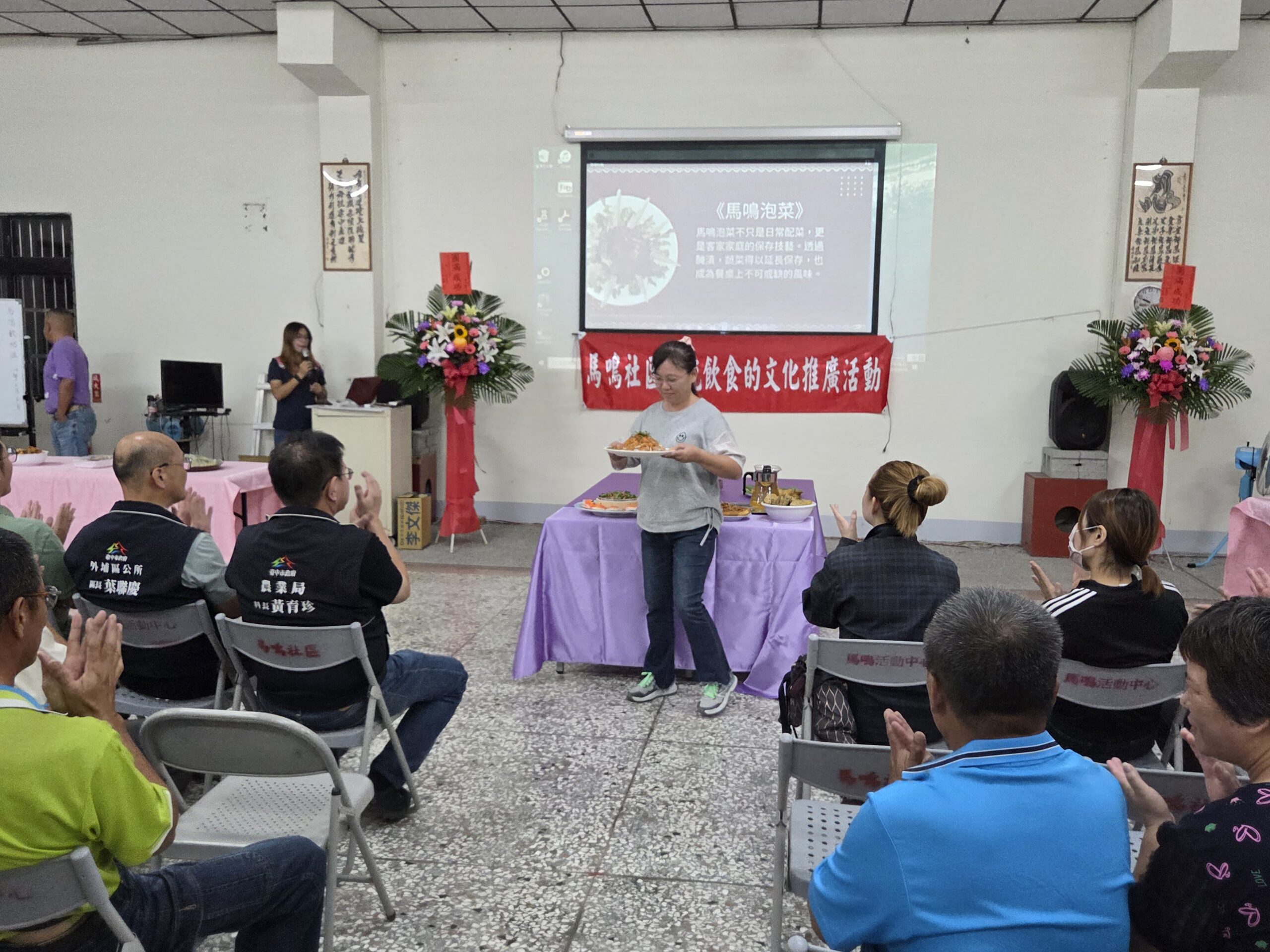 台中市政府農業局輔導台中市外埔區馬鳴社區發展協會昨(24)晚舉辦「馬鳴社區傳統飲食文化推廣成果展」,透過推廣在地飲食文化,邀請社區居民共襄盛舉,分享運用在地食材開發家鄉菜課程與研習的豐碩成果,藉由現場品嚐與交流互動活動,讓參與者近距離了解食材來源、烹飪技法及飲食文化的傳承意涵,感受社區推廣在地飲食教育的熱忱與創意,發揚外埔的風味,深化居民間情感交流。