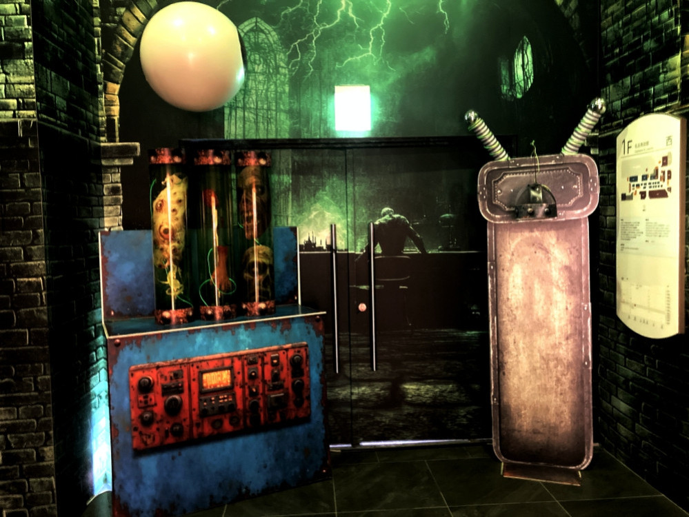 ▲竹北遠百搶先在1樓西側電梯廳換上「恐怖實驗室」限定主題裝飾,濃厚的驚悚氛圍正式登場!