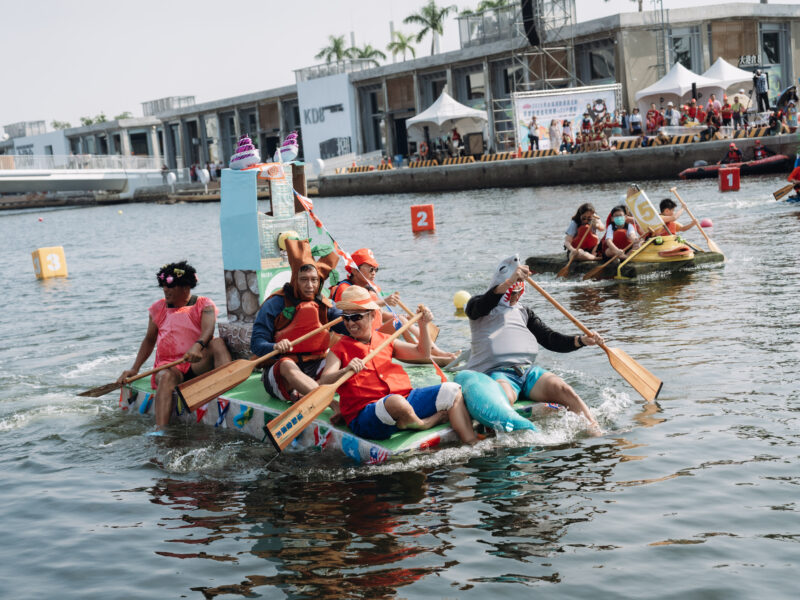 活動期間更有國際學校學生組成的「大腸包小腸」隊,以全回收寶特瓶打造船筏,成功載著5名學生在觀眾驚呼聲中順利完賽;另外,「王家NO.1」隊雖在比賽過程中多次翻船,仍不放棄,最終扶著船筏游回終點,全場觀眾報以熱烈掌聲與加油聲,充分展現運動家精神。
