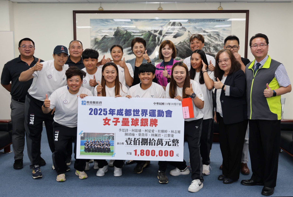 2025年世界運動會於8月7日至17日在大陸成都市盛大舉行,中華台北國家代表隊於女子拔河與女子壘球項目強勢奪牌、雙雙登上世運會頒獎台,其中多位南投縣籍選手參與中華隊陣容,展現扎實運動底蘊與堅毅精神。縣長許淑華27日在縣府接見選手,頒發獎狀、獎金肯定、鼓勵她們在國際賽場的傑出表現。