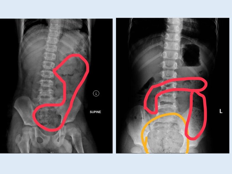 另一名6歲的小一女童,則是因為肚子痛得大哭,腹部異常脹大。X光顯示她「一肚子大便」。媽媽猜測,孩子剛上小學,可能還沒習慣學校的作息與如廁環境,有便意也忍著不去,連好幾天沒排便都沒察覺,直到嚴重才送急診。此外,還有周歲女嬰因大便乾硬如「羊糞」、帶有鮮血及肛裂求診。女嬰媽媽表示,換副食品後便開始便秘。醫師除了衛教調整副食品內容,也開立軟便藥,以減輕排便疼痛,修復肛裂。