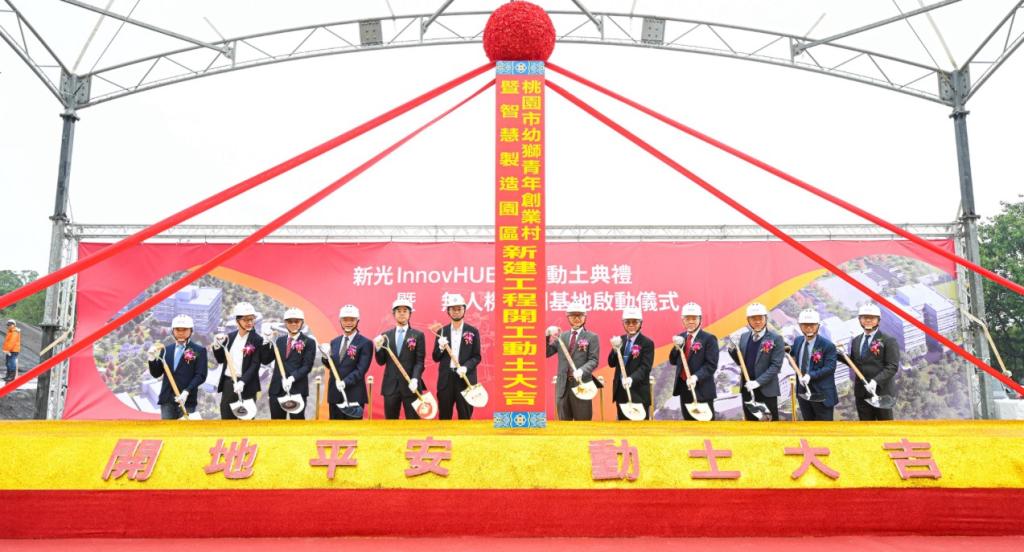 【大成報記者袁慧心/桃園報導】桃園市長張善政今(28)日上午前往楊梅區,出席「新光InnovHUB第一期開工動土暨蓋亞資本啟動典禮」。張市長表示,本園區將命名為「幼獅青年創業村暨智慧製造園區」,不僅緊鄰幼獅工業區,象徵地理上的連結,更寓意其為產業界孕育創新動能的「幼獅」,規劃結合無人機與人工智慧產業,兩者相輔相成,相信定能成為最具特色的青創基地,感謝新光集團看見桃園的科技潛能與創新能量,與市府攜手實現青創願景。