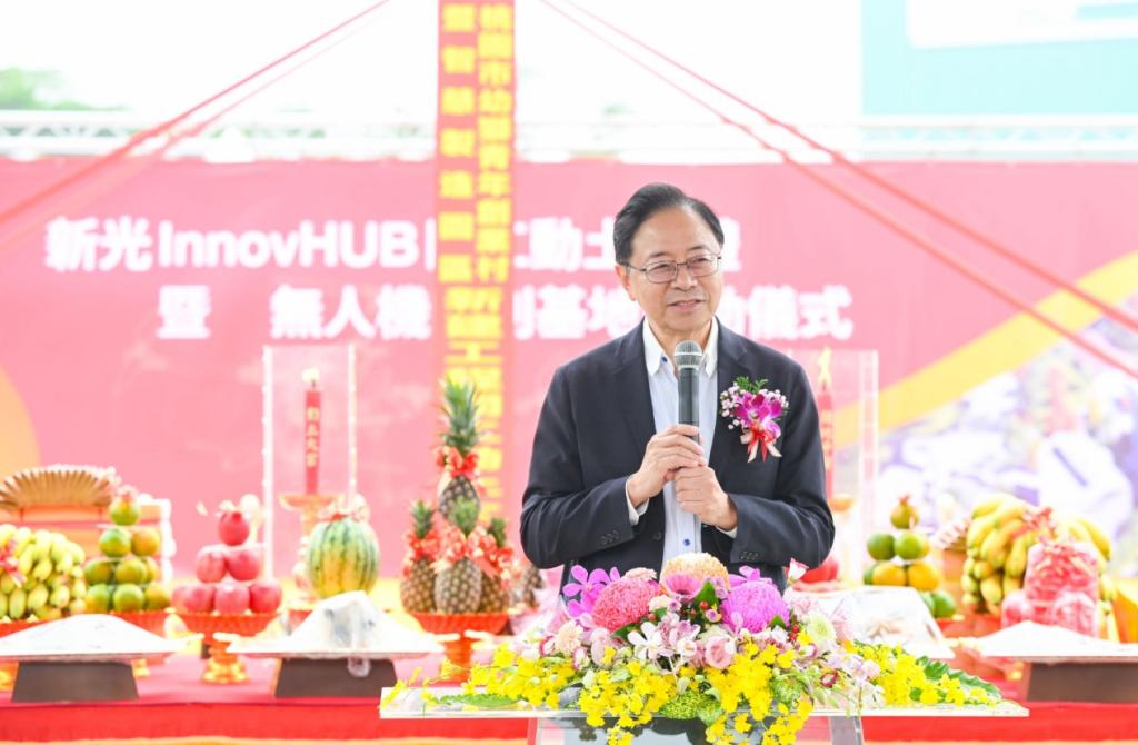新光合成纖維股份有限公司董事長吳東昇表示,「新光InnovHUB」將打造為全臺功能最完整的智慧無人載具中心,結合研發、測試、生產、人才培育、試飛與考照於一體的創新基地。桃園擁有完整電子與精密製造體系,從零組件到系統整合皆具備優勢,新光InnovHUB可望借重此基礎,促使創新構想轉化為具國際競爭力的產品。此外,也將同步成立「蓋亞資本」,以支持青年創業與創新事業的發展,建立從技術研發到商業化的完整創新生態系統,期盼未來透過政府政策引導、企業資源投入與年輕世代的創意熱情,共同打造臺灣無人機產業新時代。