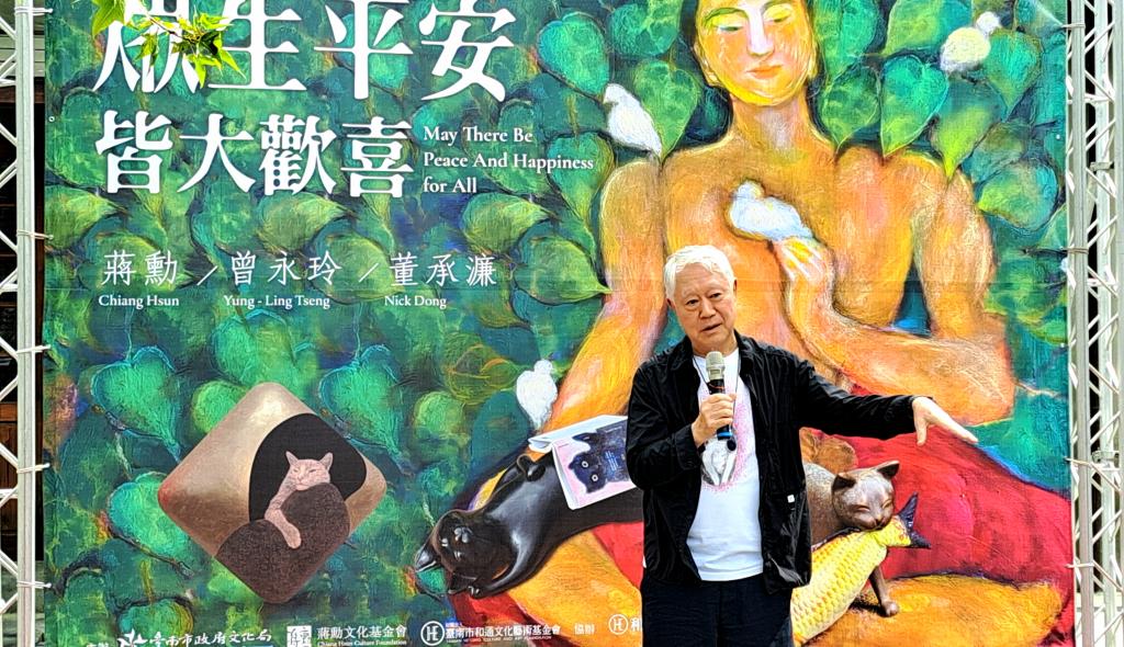 葉澤山表示,感謝蔣勳老師與林懷民老師2位文化巨擘齊聚臺南,水交社文化園區自「和通蔣勳書房」成立以來,已成為臺南重要美學與人文交流場域;近一年來,臺南歷經颱風、震災等風雨洗禮,許多人家園受創,生活受到影響,人心承受巨大不安與焦慮;蔣勳老師此時將這份《眾生平安 皆大歡喜》祝福帶來臺南展出,不僅是對這片土地深切關懷,更重要的是,它透過藝術與佛學結合,為所有在災難中經歷傷痛市民,帶來一股沉靜、穩定療癒力量。