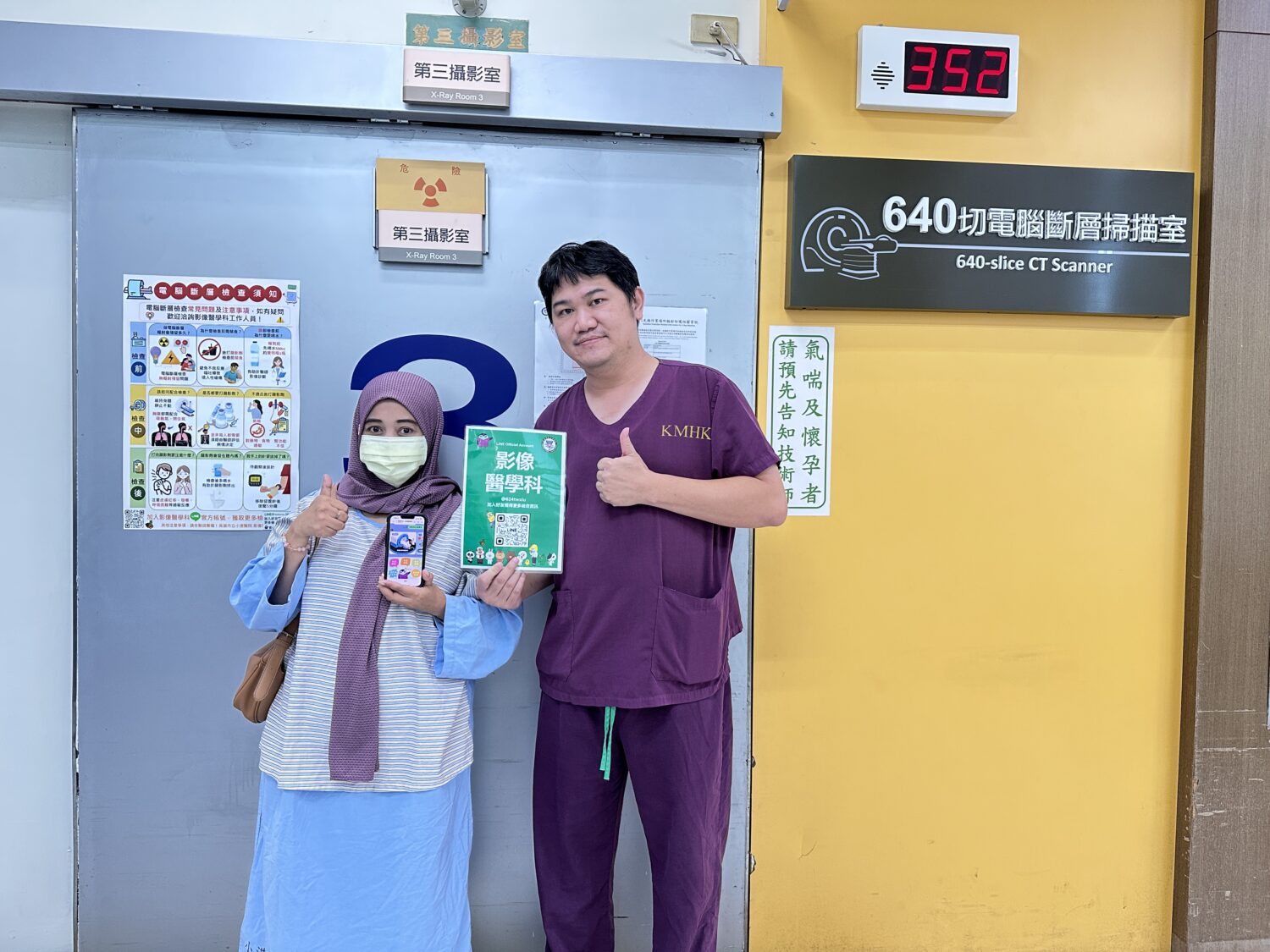 目前每年有超過三萬名外籍移工在小港醫院進行影像檢查,小港醫院李宗憶放射師表示,除了改善CT等候流程檢查時間,團隊結合專業與創意,打造首創的「多國語言友善檢查環境」,包含「多國語音衛教廣播」、「多語衛教單張」、「穩影LINE@ 專屬互動平台」,讓外籍移工與原住民族群都能以熟悉的語言了解檢查流程與自我照護要點。放射師在檢查過程中主動互動、耐心解說,不只減少誤解,更消除了恐懼,讓影像檢查成為一段安心的體驗。