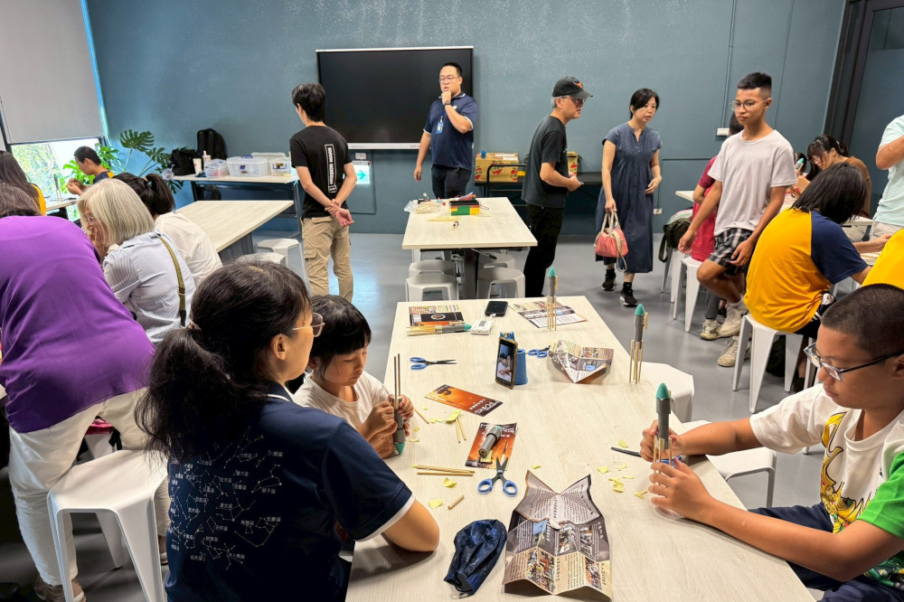 此外,「硝化糖火箭」與「水火箭」體驗讓參加者親手組裝火箭、感受推進力奧妙;「福八彩繪DIY」則讓孩童以創意描繪太空夢想,並帶回福衛八號紙模型留念,現場笑聲不斷。