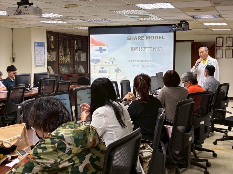 為提升醫療人員的病情告知與溝通能力,高雄市立聯合醫院與台灣心理腫瘤學會合作推廣醫病溝通技巧。內科部主任陳盈凱醫師說明,台灣心理腫瘤學會自日本引進癌症病情告知溝通技巧訓練的標準化模式,稱之為「分享模式」(SHARE model)。此模式涵蓋四個核心議題:一、設定支持性的環境;二、壞消息的傳達方式;三、附加的資訊;四、再保證與情緒支持。