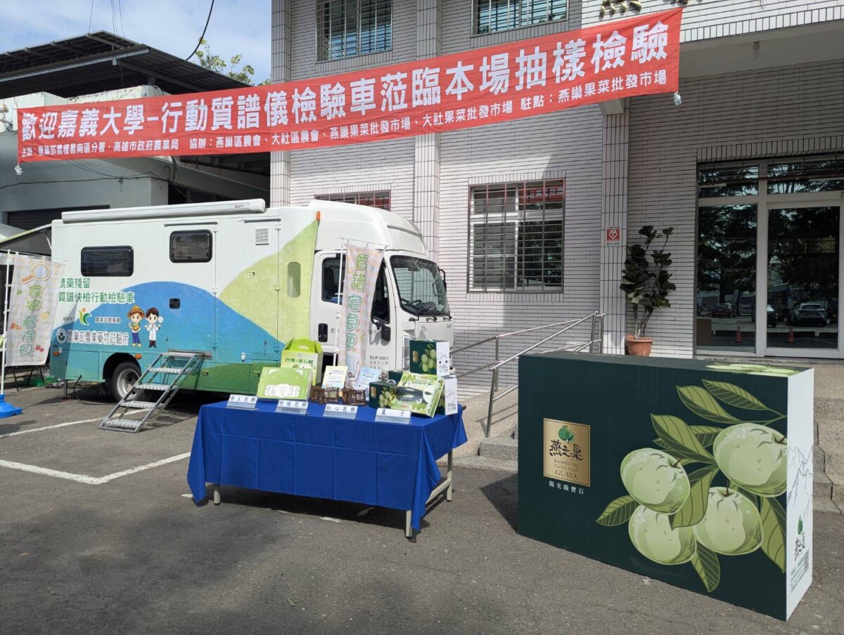 「質譜宅急便」行動質譜車巡迴快篩服務導入「燕巢果菜批發市場」,為期兩週(每週三至五)提供現場快檢服務。(記者翻攝)