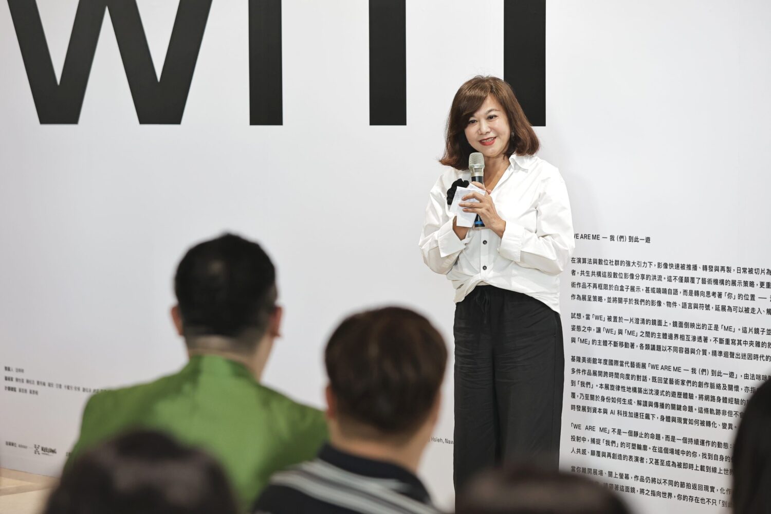 策展人法咪咪指出,本展以「WE ARE ME」為題,象徵集體與個體之間的共生與矛盾;副標「我(們)到此一遊」則呼應社群媒體時代的觀看現象,探討當「表態」與「被看見」成為日常,我們又如何在群體中尋回自我。視覺設計由知名設計師聶永真操刀,以群眾凝視空白牆面的影像呈現,象徵觀看本身即是一種表演,也邀請觀眾反思自身與藝術間的關係。