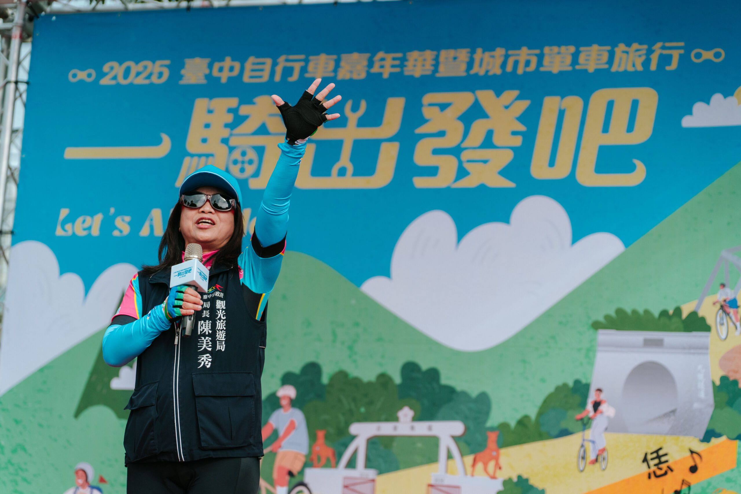 觀旅局長陳美秀表示,台中擁有94條、總長超過780公里的自行車道,涵蓋山、海、屯、都等多元路線,其中又以本次活動號召超過千人騎行的「后豐鐵馬道與東豐自行車綠廊」最受歡迎,不僅年均超過600萬遊客人次,更獲知名旅遊平台Booking.com列為「全台五大絕美單車路線」!今年度台中自行車嘉年華更首度邀請到韓國旅行業協會(KATA)、全球城市旅遊振興機構(TPO)、韓國釜山市政府團隊以及日本關西觀光本部等外賓共襄盛舉,除了參與自行車騎行活動,並參訪自行車文化探索館,就跨城市的產業合作進行友好交流。