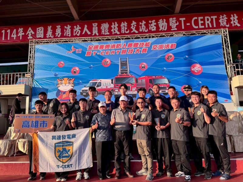 興達電廠代表高雄市參加 「114年度全國台灣民間自主應變隊(T-CERT)競技大賽」,在全國16隊競賽中,總成績獲得全國總冠軍,可喜可賀!