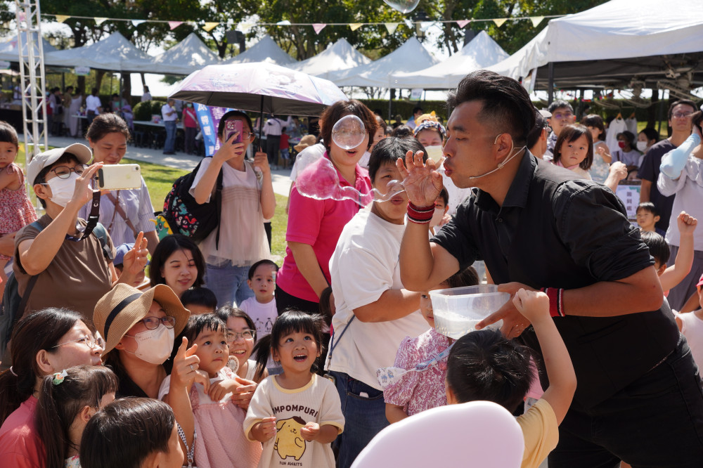 活動現場節目精采不間斷,美善光明早療幼兒班帶來可愛的音樂舞蹈表演,小作所的心智障礙青年及台江健身俱樂部長者也以活力滿滿的演出,展現勇氣與自信。另有泡泡達人、小丑魔術師與兒童劇團加入同樂,讓現場笑聲不斷。小老闆市集也在孩童們的吆喝聲中熱鬧滾滾,在互動與體驗中,透過愛物惜物為地球貢獻心力。