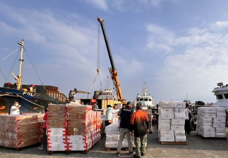 高市財政局聯合保三第二大隊及第五海巡隊 共同破獲雜貨輪走私菸品107萬7,000包 市值逾8,000萬元