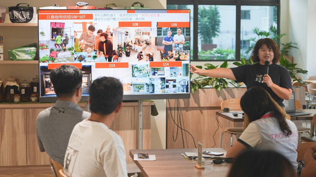 圖說: 「省府散策」主理人朱怡甄老師分享中興新村轉變成青年創生聚落。( 圖/青年局提供)