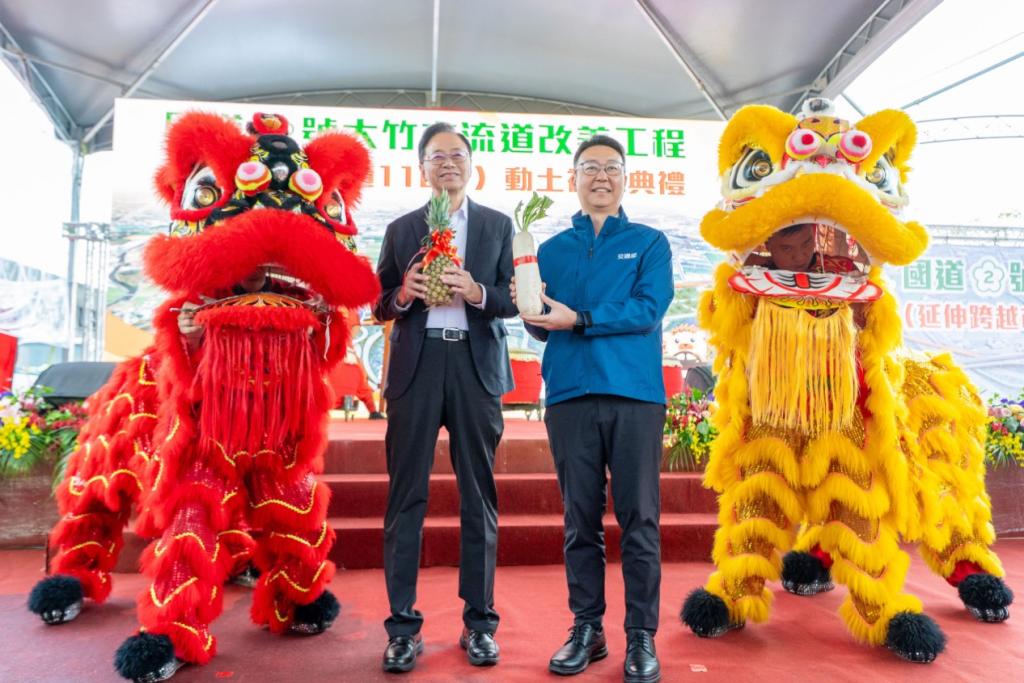 【大成報記者袁慧心/桃園報導】桃園市長張善政今(3)日下午前往大園區,出席「國道2號大竹交流道改善工程(延伸跨越市道110甲)動土祈福典禮」。張市長表示,大竹交流道位於國道2號、台31線及市道110甲交會的重要節點,本案總經費達新臺幣13億5,900萬元,完工後可有效紓解國道2號匝道壅塞問題,尖峰時段通勤時間可望縮短近半,大幅提升市民通行效率與生活便利。