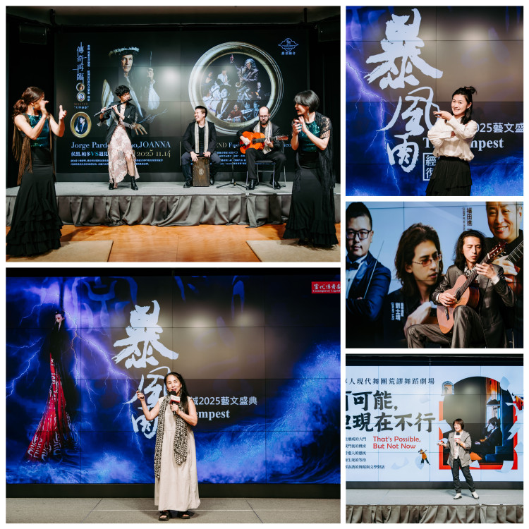 【 大成報記者吳非羽/臺中報導 】 時序入冬,臺中國家歌劇院11、12月將獻上「藝術好朋友」歲末4檔精彩節目,包含稻草人現代舞蹈團的荒謬舞蹈劇場《有可能,但現在不行》、當代傳奇劇場的魔幻京劇《暴風雨》、遇見喬安娜拉丁爵士創作樂團力邀葛萊美獎得主侯黑.帕多(Jorge Pardo)共演的《FJF爵世融合─傳奇再臨》,還有日本吉他大師福田進一助陣的第8屆臺灣國際吉他藝術節《TIGF2025巡禮》。11/6記者會上,無論是藝術大師、或是名團齊聚,在在與歌劇院的「遇見巨人」系列相互輝映。