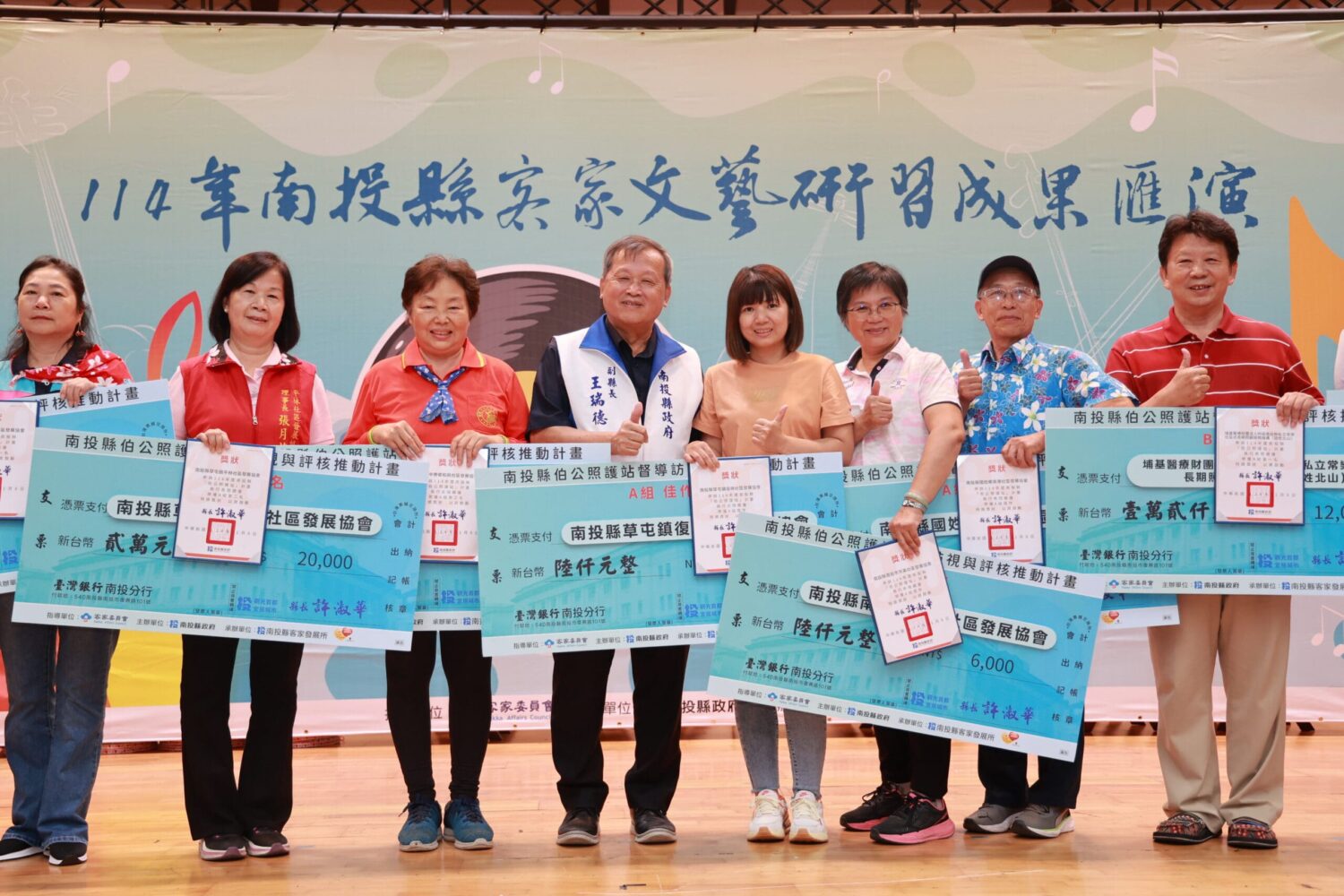 南投縣客家文藝研習成果匯演暨伯公照護頒獎活動8日下午在南投高中演藝廳舉行,南投縣副縣長王瑞德代表縣長許淑華,頒獎給伯公照護評核績優單位,其中,草屯南埔社區發展協會、埔基國姓北山長照機構,分獲A、B組第一名。