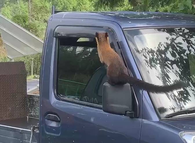 小貨車副駕駛座車窗沒關好 大膽黃喉貂侵入覓食萌樣笑翻一堆人