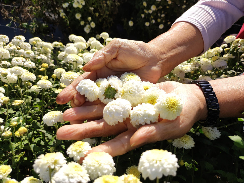 ▲採收杭菊撲鼻香味。(圖/林保署新竹分署火炎山生態教育館提供)