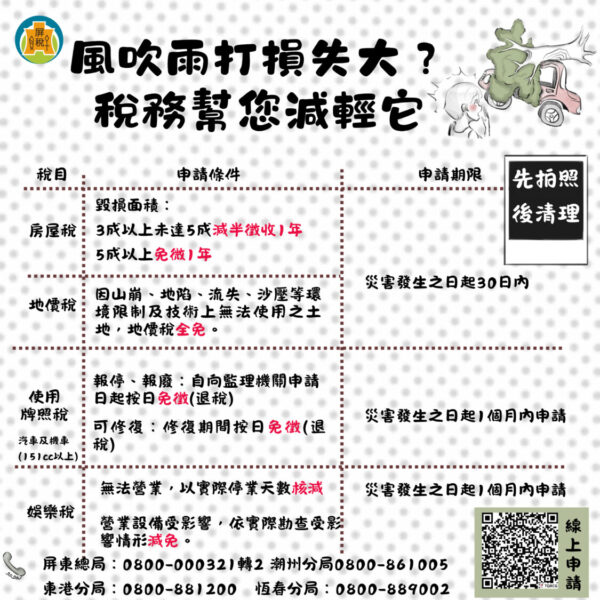 防災先備妥,屏東縣財稅局特別提醒民眾「災害稅捐減免」措施 免煩惱