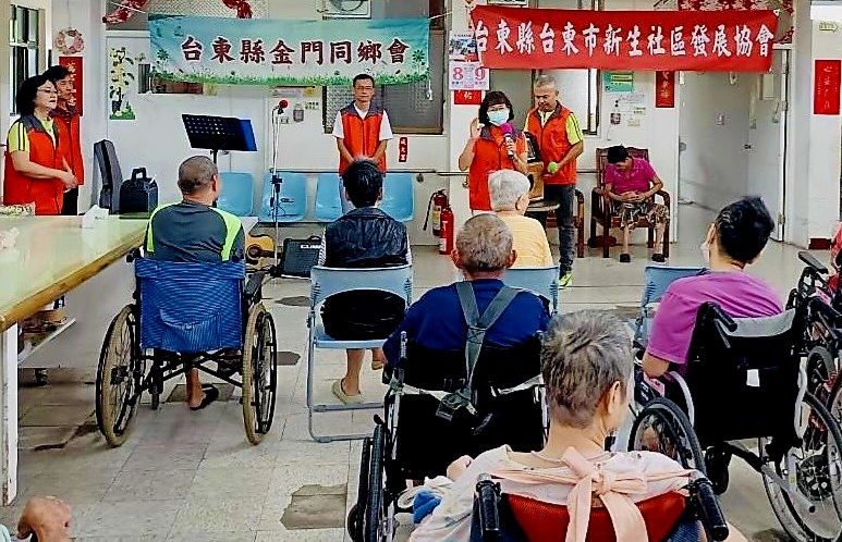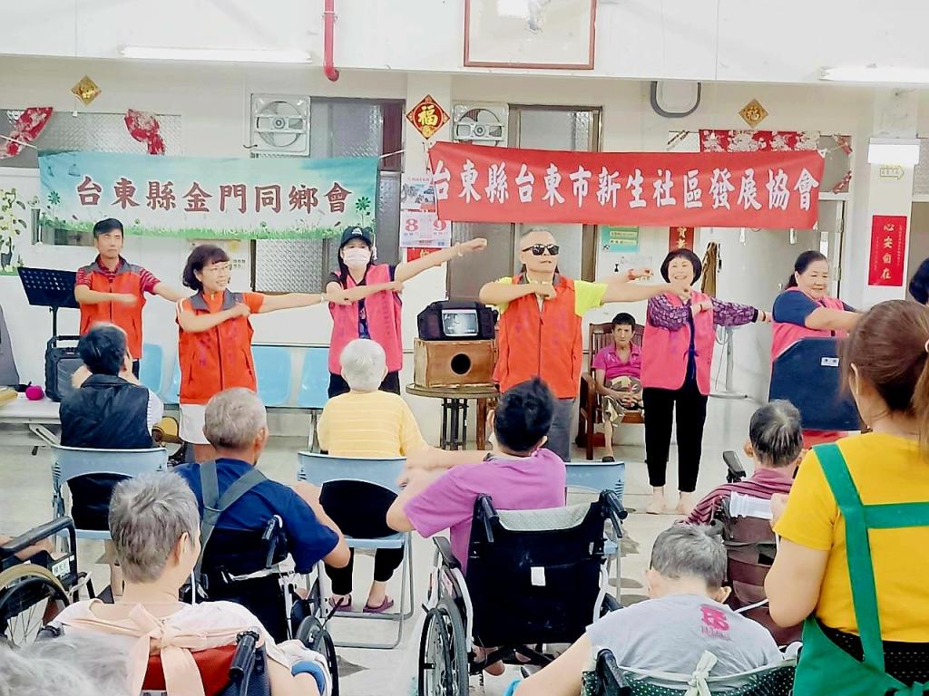 在溫馨社區關懷活動中,臺東縣金門同鄉會在理事長黃金瓊領軍下,會同理事楊東賢、王寶成、總幹事許悠浪、秘書林美秀等一行,於近日下午前往臺東縣私立仁和老人養護中心,展開了一場以關懷長者為主題活動。
