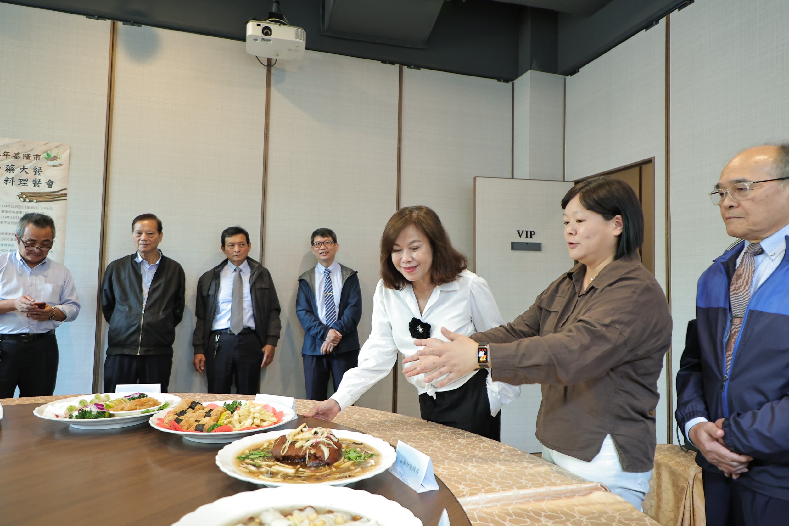 產業發展處長蔡馥嚀(上圖右2)說明,今年的「山藥大餐」以創新料理呈現基隆山海特色,邀請多位知名主廚以山藥入菜,結合新鮮漁產與當季食材,打造十道兼具創新與傳統的特色佳餚,包括「山藥海鮮寶寶」、「山藥白玉卷」、「山藥魚肉米粉鍋」等料理,展現山藥獨有的鮮甜與細緻口感。