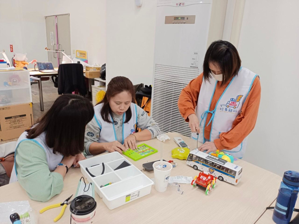 圖說:玩具銀行志工整理玩具(左2:志工隊長傅玟瑜)。(唐氏症基金會提供)