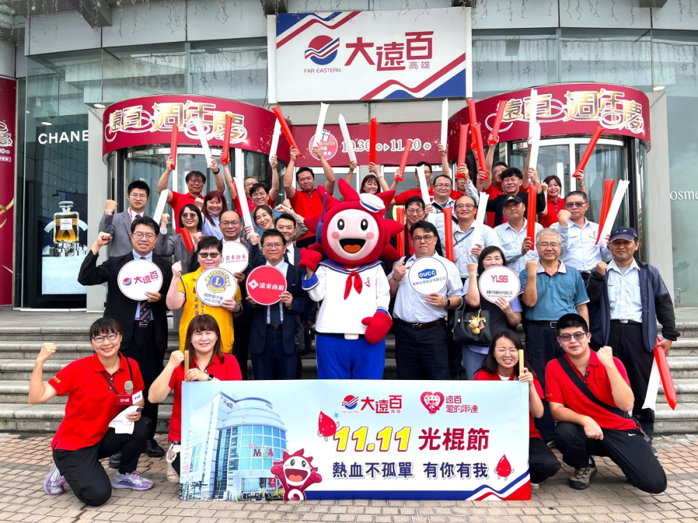 【大成報記者張淑慧/高雄報導】高雄大遠百11月11日於一樓廣場舉辦「1111光棍節熱血不孤單.有你有我」公益捐血活動,攜手遠龍不銹鋼、東聯化學、遠東商銀、亞東證券、高雄捐血中心及國際獅子會300 E2區,當日成功募集118袋、29,500cc血液,為醫療用血注入穩定能量。
